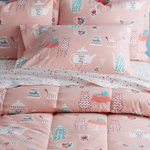 Tea for Two Multicolored 200-Thread Count Cotton Percale Queen Flat Sheet