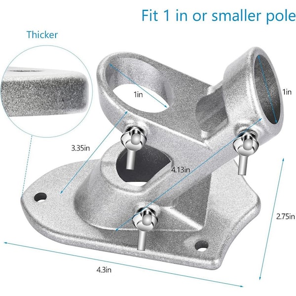 2-Pack Flag Pole Holder Outside House, Heavy Duty Aluminum Bracket with Stainless Hardware, 1 in. ID, Rustproof, Silver