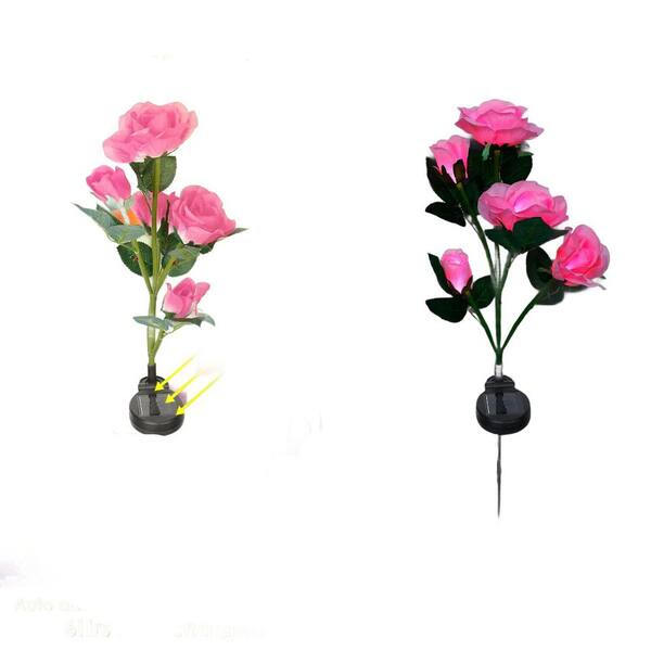 2-Pieces Solar Powered Lights Outdoor Rose Flower LED Decorative Lamp Water Resistant Pathway Stake Lights