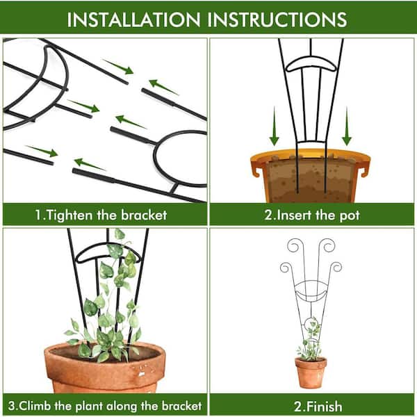 4-Pack 30 in. Black Metal Trellis for Climbing Plants, Rustproof Indoor Outdoor Support for Potted Ivy and Vines