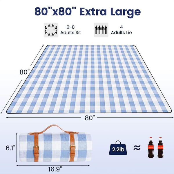 80 in. x 80 in. Picnic Blanket Extra Large, Waterproof Foldable Beach Blanket, 3-Layer Outdoor Blanket for 6 to 8 Adults