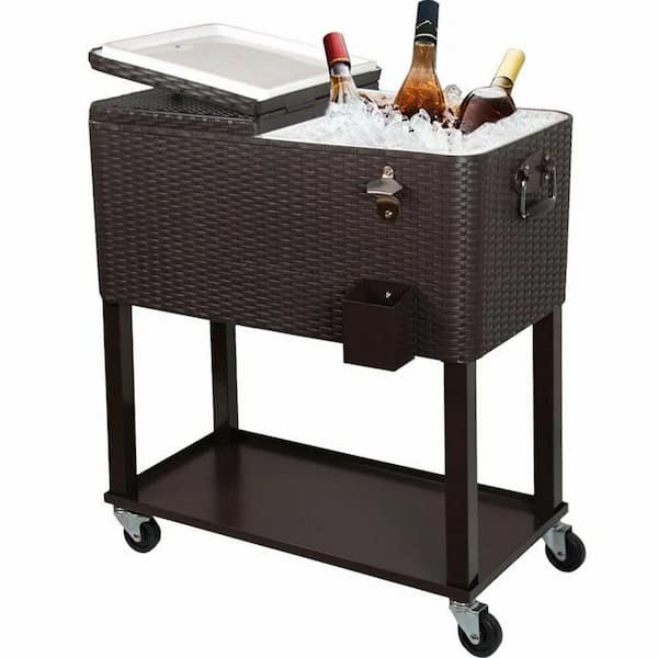 80 qt. Rolling Outdoor Patio Cooler Cart on Wheels Portable Ice Chest with Shelf