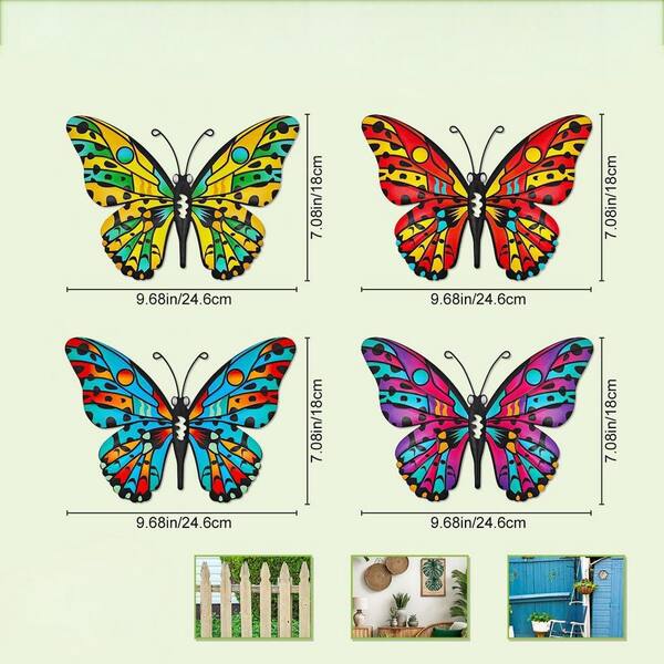 9.6 in. x 7.1 in. Metal Butterfly Outdoor Wall Sculpture (4 Pack) Butterfly-E