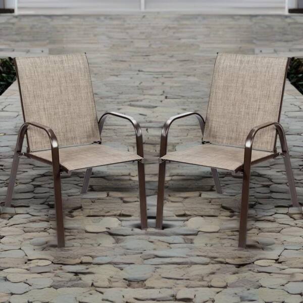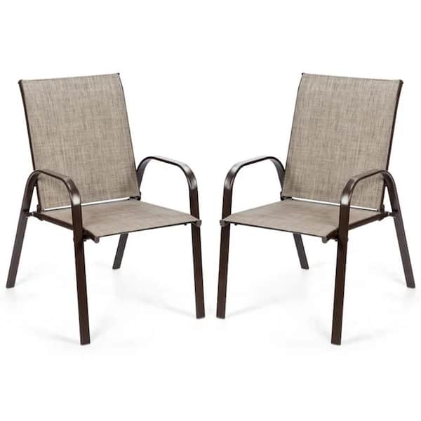 Brown 2-Piece Metal Outdoor Lounge Chair Without Sunshade Without Cushion