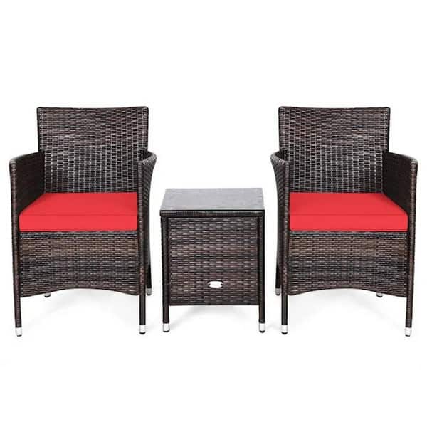 Brown 3 Piece Wicker Outdoor Lounge Chair Without Sunshade with Red Cushion