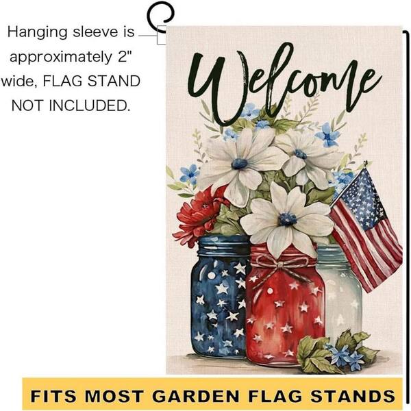 Floral Garden Flag 12 x 18 Double Sided Red and Blue Independence Day Festival Outdoor Decoration Burlap Yard Flag