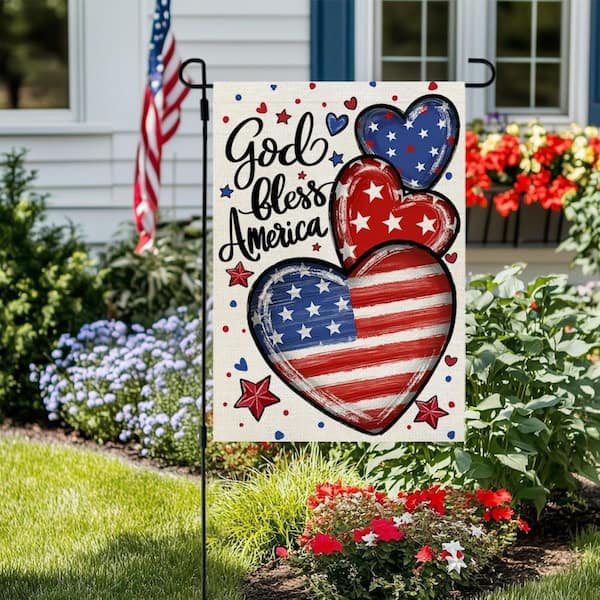 Garden Flag Patriotic Double Sided 12 x 18 in. for Outdoor Small Burlap Holiday Yard Decoration