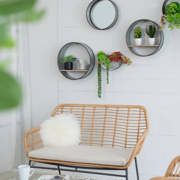 Gray Iron Farmhouse Round Metal Wall Planter, 5 Piece-17.00 in. x 17.00 in. x 5.00 in.