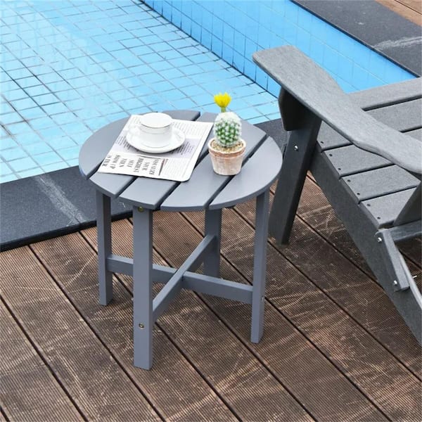 Gray Round Outdoor Side Table without Extension