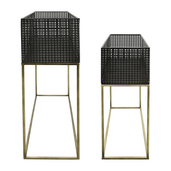 METAL, S/2 20/24 in. Square Planters for Flower And Vegetable Plant, Black/GOLD - 24 in. x 9 in. x 26 in.