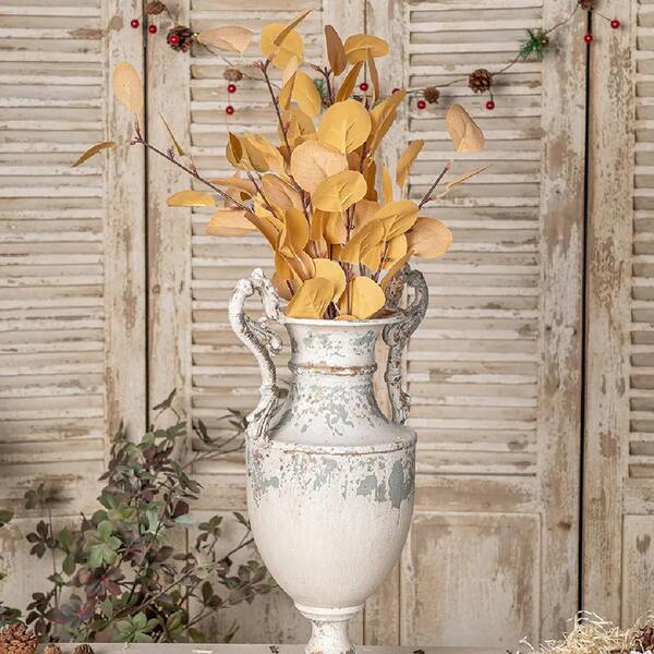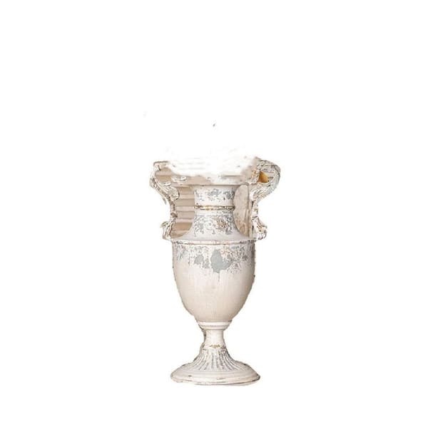 Metal Antique Grey White Vintage Floral Ceramic Vase Flower Plant Ideal, Fresh Flowers-10.43 in. x 7.28 in. x 17.91 in
