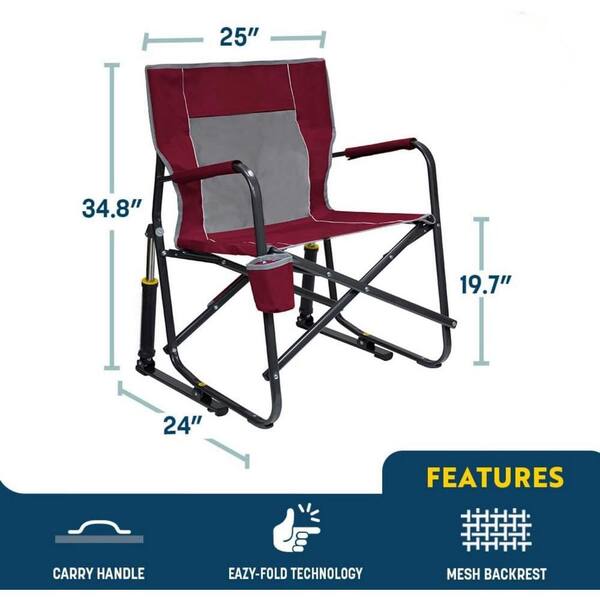 Metal Outdoor Rocking Chair Side Table Camping Chair : Portable Folding Rocking Chair with Solid Durable Armrests-Grey