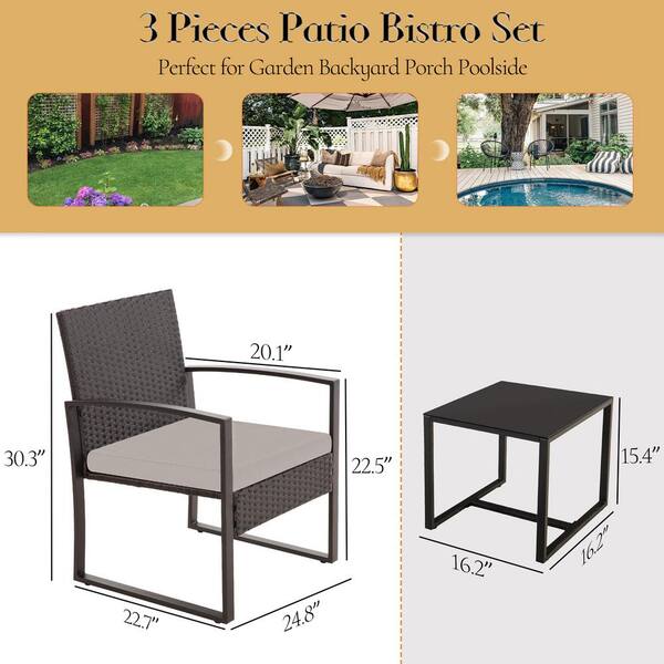 Outdoor PE Wicker Furniture 3 Pieces 24.8 in. x 22.7 in. x 30.3 in. Patio Black Rattan Sofa Chair with Washable Cushion