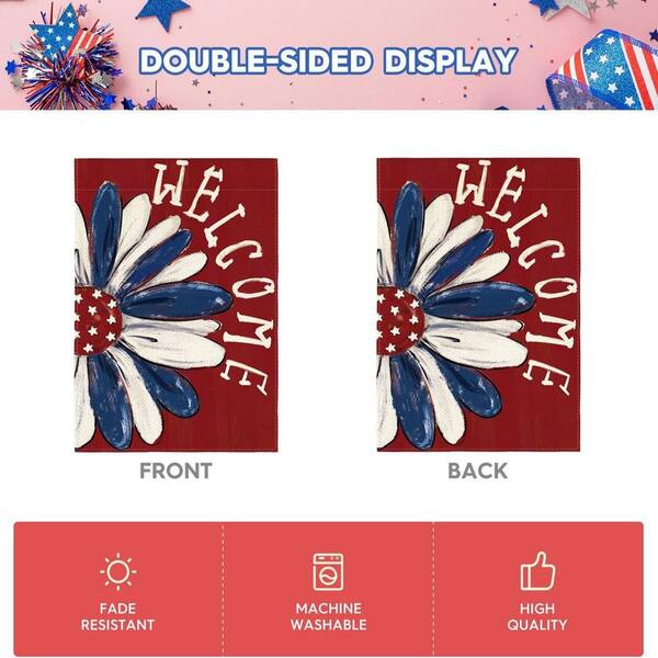 Patriotic American Independence Day Flag 28 x 40 in. Double Sided Outdoor, Red Floral Welcome Daisy Yard Outdoor Decor