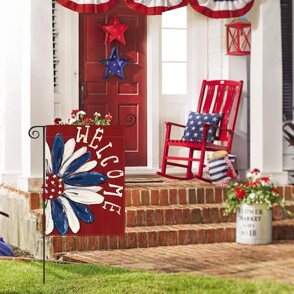 Patriotic American Independence Day Garden Flag 12 x 18 in. Double Sided Outdoor, Red Floral Daisy Yard Outdoor Decor