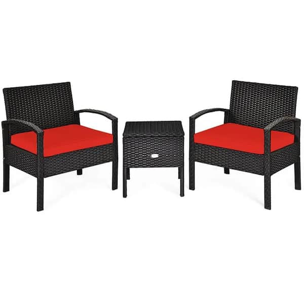 Red 3-Piece Wicker Outdoor Lounge Chair without Sunshade with Red Cushion
