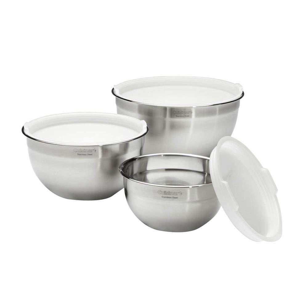 | Name | 3-Piece Stainless Steel Mixing Bowl Set with Lids | Mixing bowl for 5.5 Qt. Stand Mixer | Grey Swirl 3-Piece Enamelware Mixing Bowl Set with Lids | Solid White 3-Piece Enamelware Mixing Bowl Set with Lids |
