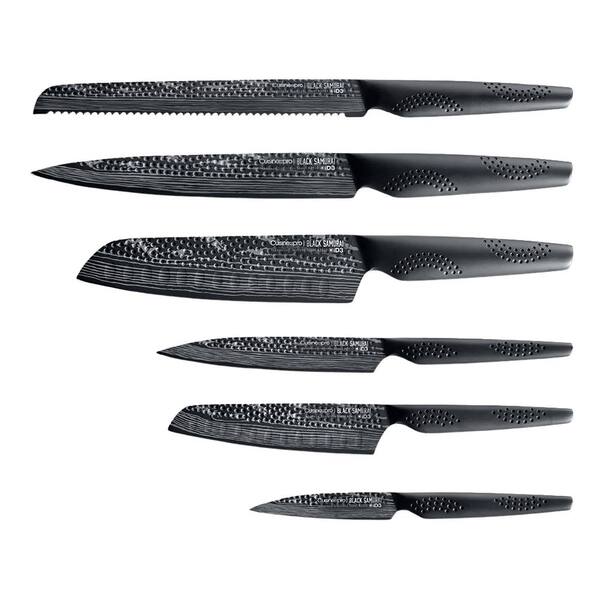 iD3 BLACK SAMURAI 7-Piece Stainless Steel Knife Set with Gozen Block