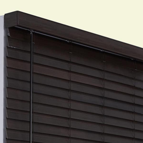 Cut-to-Width Brown Oak Cordless 2 in. Distressed Faux Wood Blind - 52.5 in. W x 72 in. L