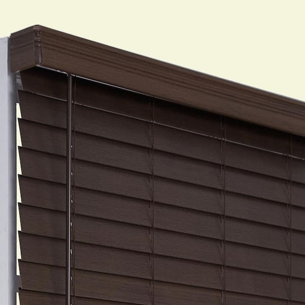 Cut-to-Width Walnut Cordless Room Darkening 2.5 in. Distressed Premium Faux Wood Blind - 35.5 in. W x 72 in. L