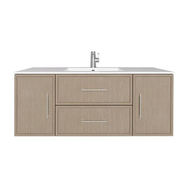 Cassidy 48 in. W x 18 in. D x 20 in. H Single Sink Wall Mounted Bath Vanity in Flavie with Cultured Marble Top in White