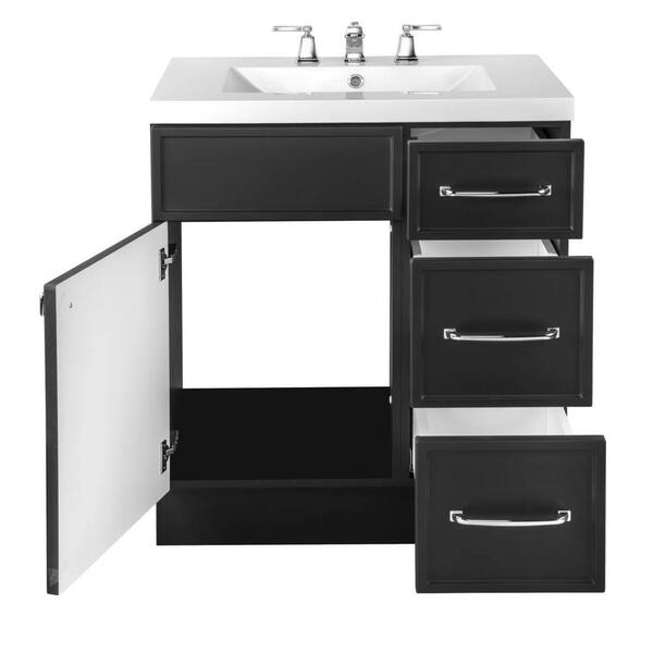 Manhattan 30 in. W x 21 in. D x 36in. H S/Sink Freestanding Bath Vanity in Black with White Cultured Marble Top in White
