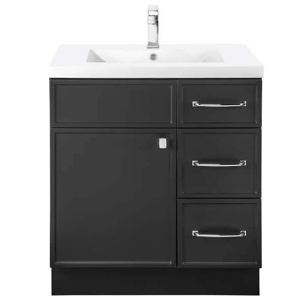 Manhattan 30 in. W x 21 in. D x 36in. H S/Sink Freestanding Bath Vanity in Black with White Cultured Marble Top in White