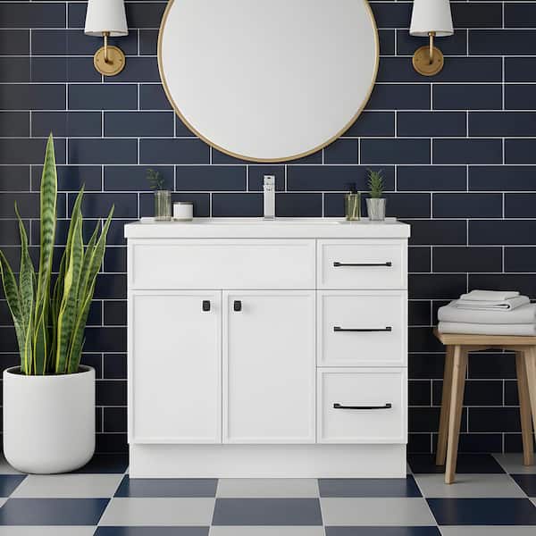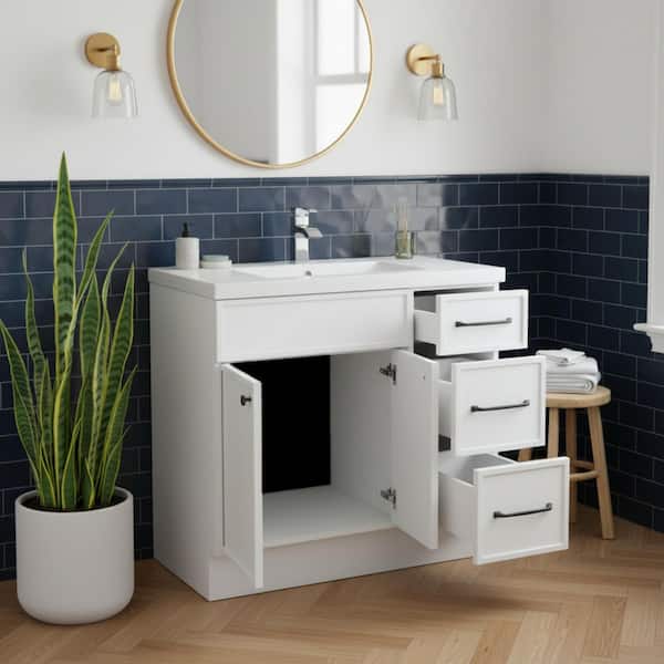 Manhattan 36 in. W x 21 in. D x 36-1/2 in. H Free Standing Vanity White with Rectangle Basin in White