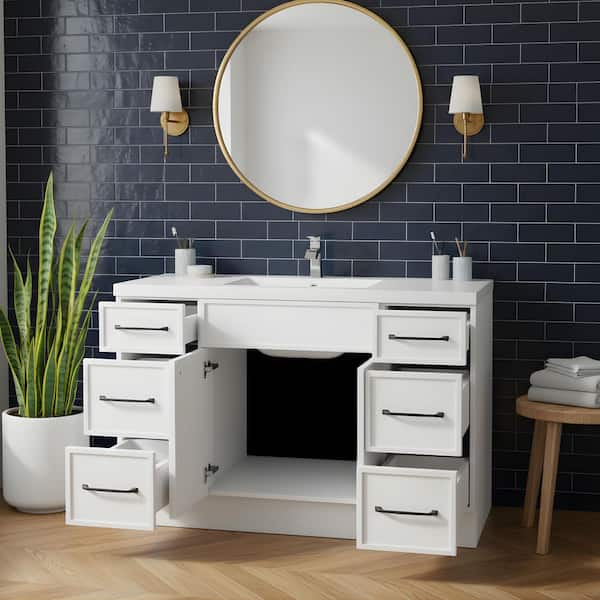 Manhattan 48 in. W x 21 in. D x 36in. H S/Sink Freestanding Bath Vanity in White with White Cultured Marble Top in White