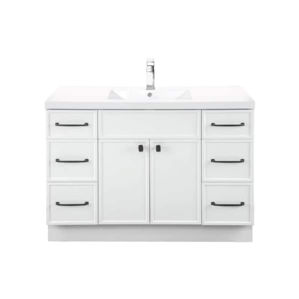 Manhattan 48 in. W x 21 in. D x 36in. H S/Sink Freestanding Bath Vanity in White with White Cultured Marble Top in White