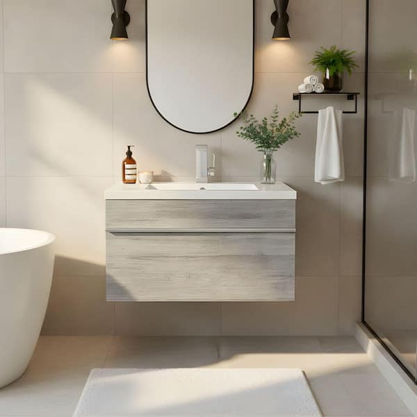• Made in Canada durable wood bath vanity with cultured marble top
