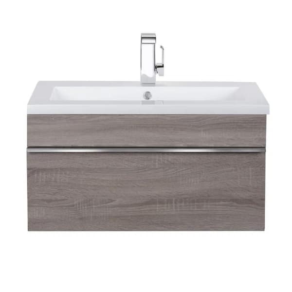Trough 30 in. W x 16 in. D x 15 in. H Single Sink Wall Bathroom Vanity in Dorato with Cultured Marble Top in White