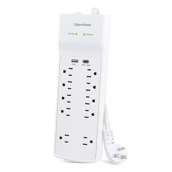 10-Outlet Surge Protector with USB and 4 ft. cord, White