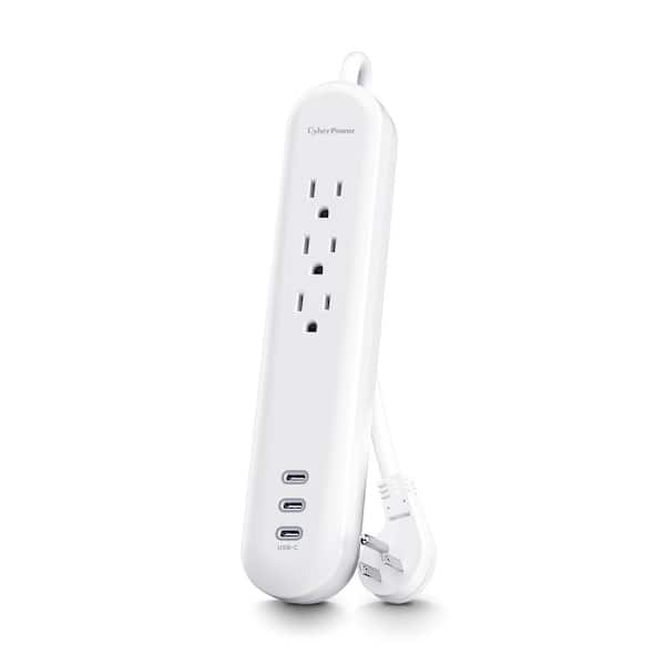 4 ft. 3-Outlet Surge Protector with 3 USB-C Ports and Cord, White