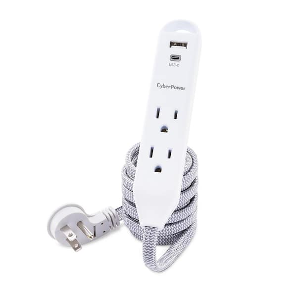 6 ft. 2-Outlet Surge Protector, USB-A 2.4 Amp, USB-C 15-Watt, 400 Joules Braid Cord