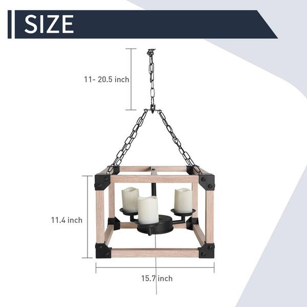 Cypress 3-Light Wood Color LED Outdoor Chandelier Light with Decorative Candle