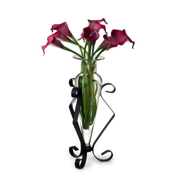 14.5 in. Glass Decorative Amphora Vase on Metal Spring Stand in Clear Glass