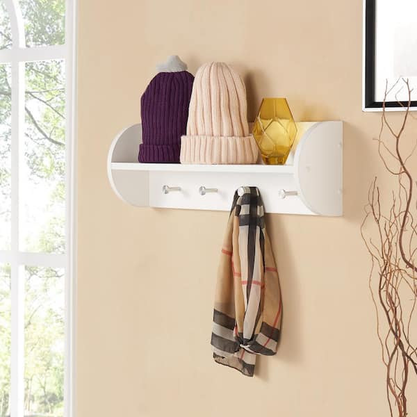 25 in. x 8 in. White Utility Shelf with Four Large Stainless Steel Hooks