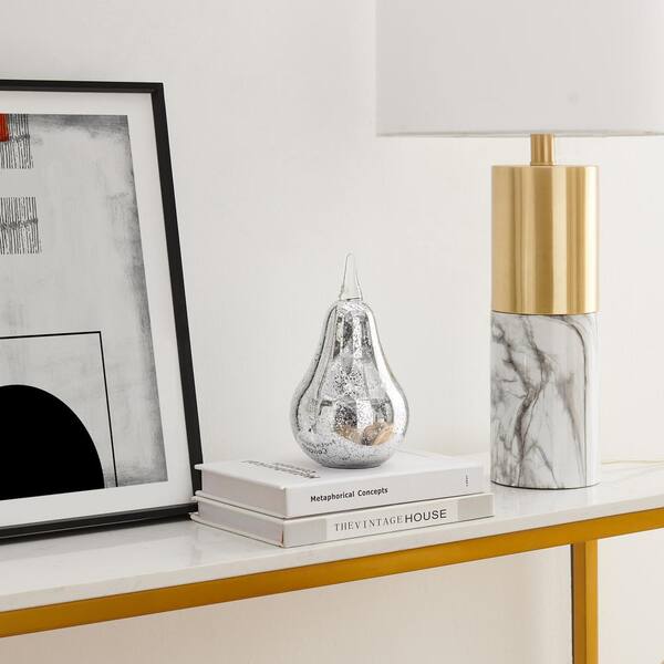 Alloya 2-Piece 4.35 in. W x 7.85 H Apple and Pear Decorative Accent Glass Tabletop Sculpture Set - Silver