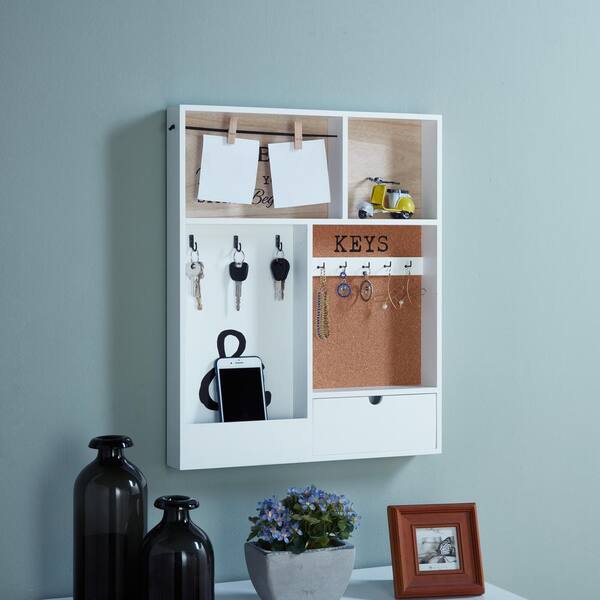 Entryway White MDF Key/Mail Holder Wall Organizer