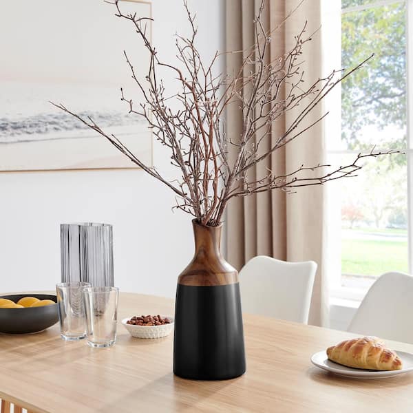 Milo Kande Carafe Cylinder 12 in. H Ceramic Modern 2 Tone Multi-Color Tabletop Vase Black and Walnut Large