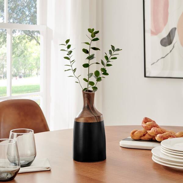 Milo Kande Carafe Cylinder Ceramic 10 in. H Modern 2 Tone Multi-Colored Tabletop Vase Black and Walnut Small