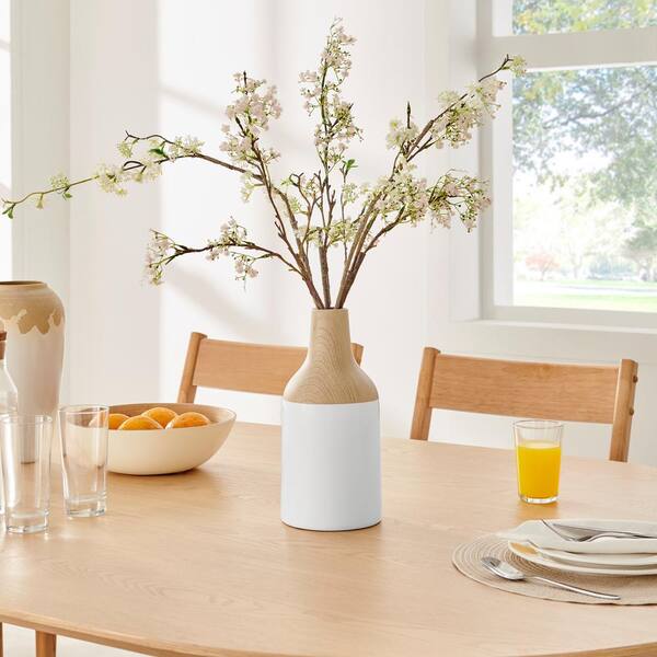 Nora Kanna 12 in. H Ceramic Bottle Cylinder Shape Contemporary 2 Tone Multi-Colored Tabletop Vase White and Beech