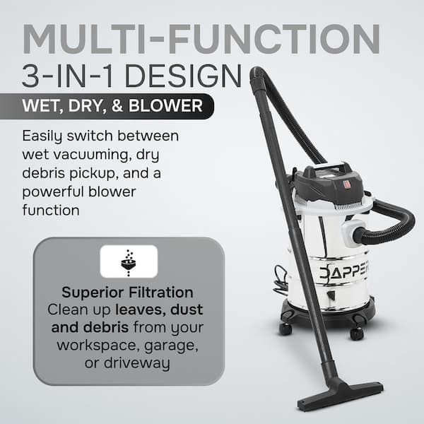 6 Gallon 3.0 Peak HP Stainless Steel 3 in 1 Shop Vacuum Wet Dry Vac with Filter, and Accessory Attachments