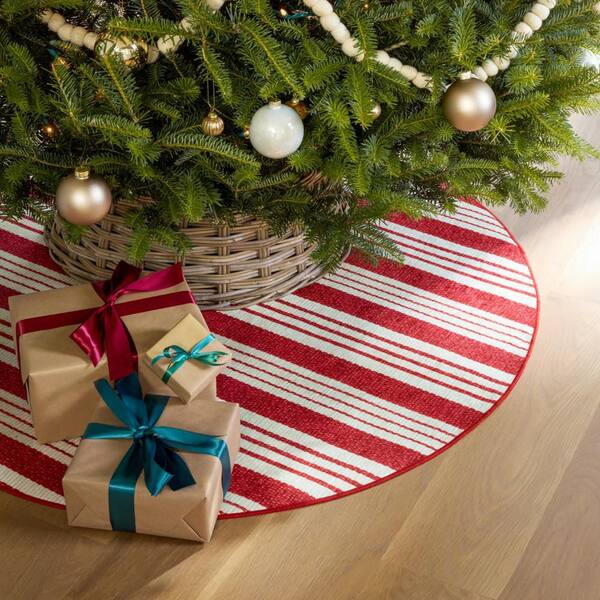 Abby Ticking Machine Washable Red 2.6 ft. x 6 ft. Indoor Area Rug