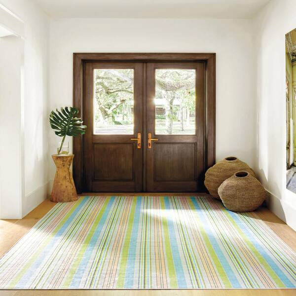 Aquinnah Ticking Machine Washable Multi 5 ft. x 8 ft. Indoor Area Rug