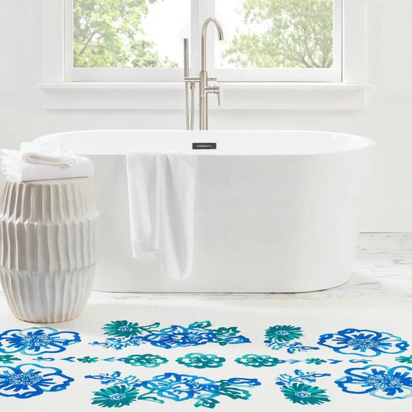 Graphic Gerbera Machine Washable Teal 2.6 ft. x 8 ft. Indoor Area Rug
