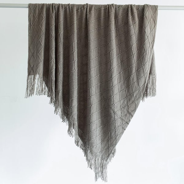 Gray Diamond Pattern Design (Set of 2) Decorative Knit Throw Blanket, 50 x 60 in, Boasting a Durable Fringe Edges