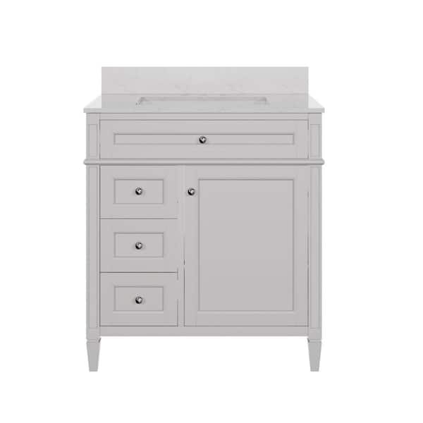 30 in. Single Sink Freestanding White Wood Bath Vanity with White Engineered Marble Top (Assembled)