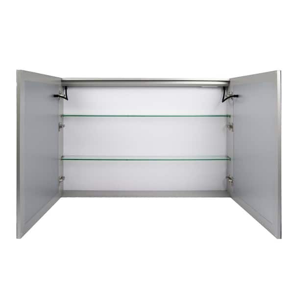 48 in. W x 32 in. H Rectangular Silver Aluminum Surface LED Light Medicine Cabinet with Mirror, Anti-Fog, Double Doors